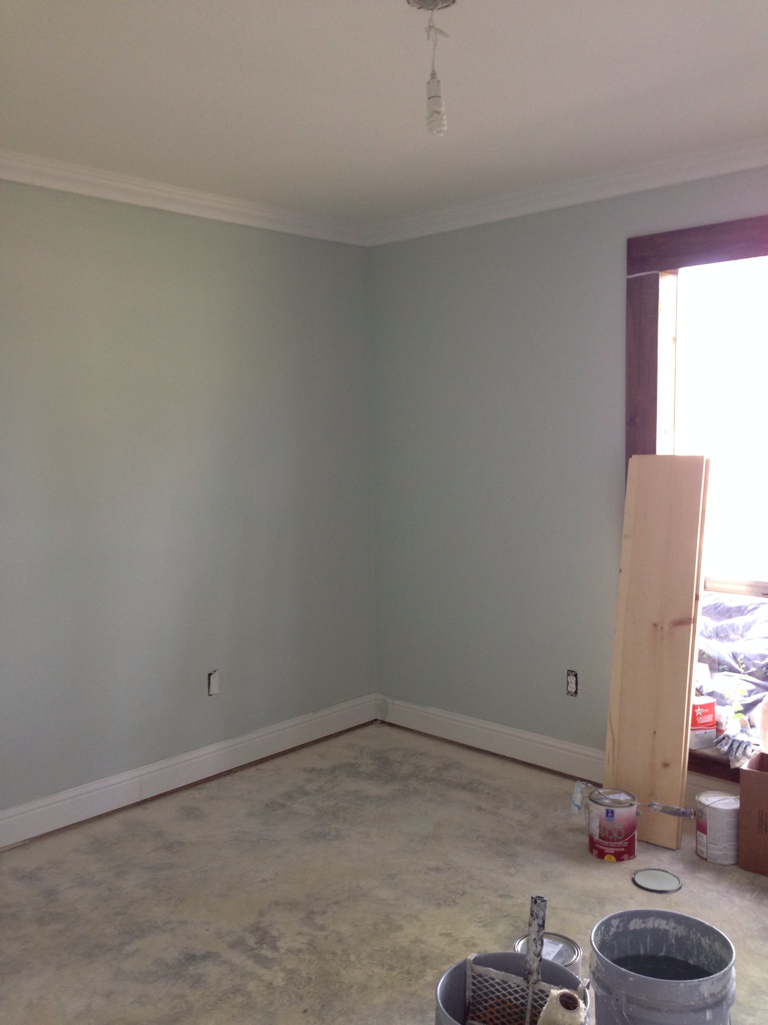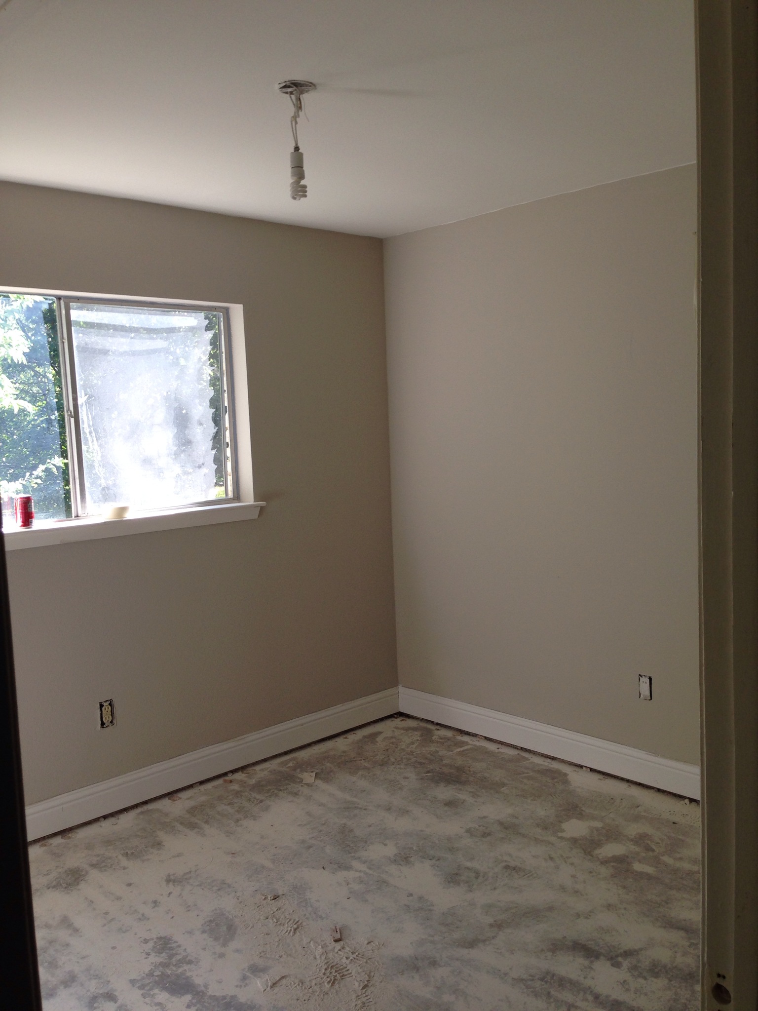Prior to the move, the painters finally got some paint on our walls. FINALLY. A week and a half after they started working. Sloths, I tell you… Anyways, I am very pleased with the colors that we chose. As my researched told me, Revere Pewter did not let me down!