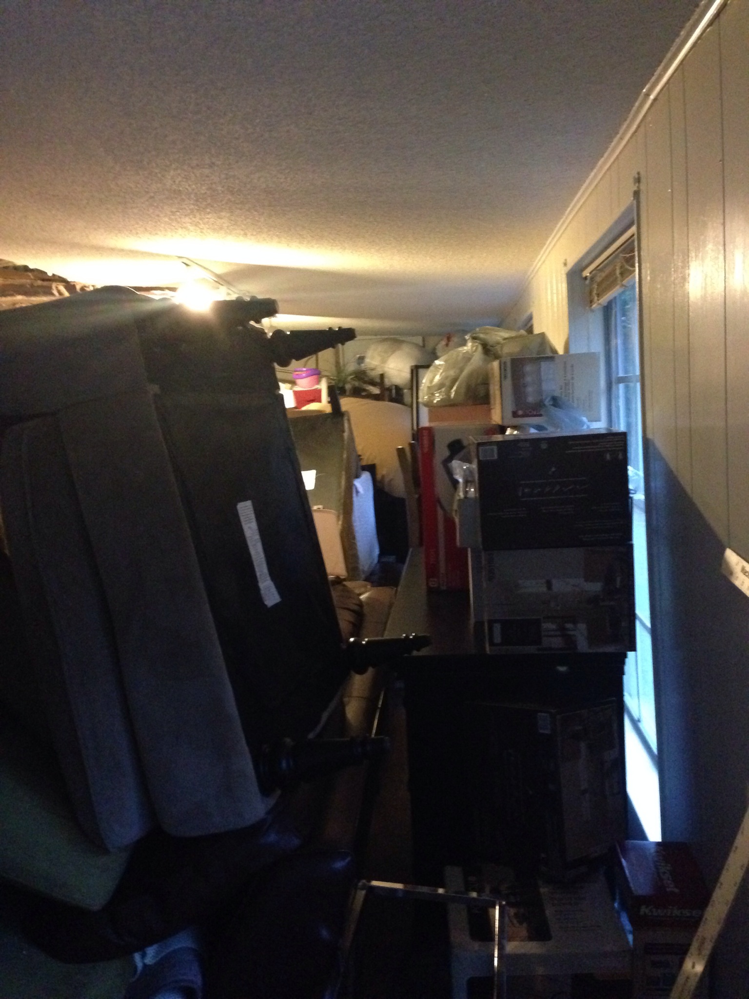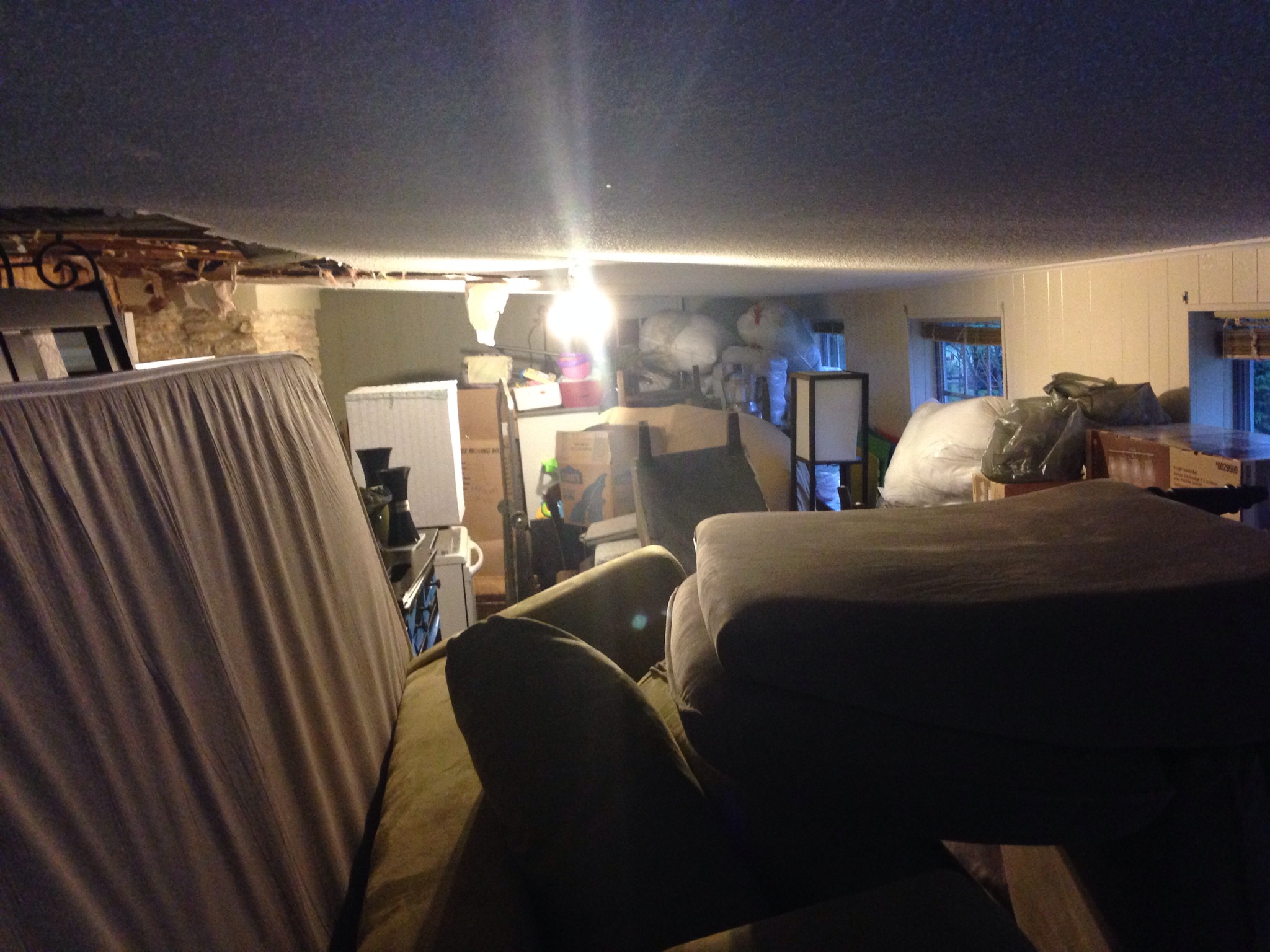Around 2:00 the rain finally let up so we were able to get the show on the road. It stayed dry just long enough for us to unload the first load of stuff. Then it poured AGAIN! I’m hoping rain on moving day is good luck as it is with weddings. Trust me, I know we needed the rain. Our grass looked more like hay than grass. I just wish it would have happened tomorrow. Regardless, we were able to get a lot done. We still need to make another trip tomorrow, but all the big stuff has been moved. Our makeshift storage unit is almost maxed out!