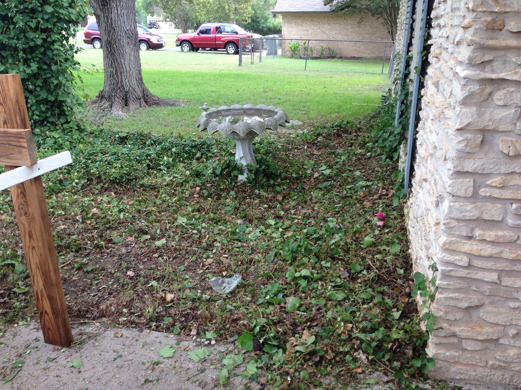 Trent had the first go at it which enticed me to get in there and shred the life out of it. It was a messy job, but I love weed eating! You wouldn’t believe the amount of creepy crawlers that were residing in there that I chopped into smithereens. Exterminating was almost as fulfilling as removing the hideous vegetation. Trent quickly reminded me that we had bigger fish to fry at the moment and needed to get back to unpacking. Me being the good wife that I am, hung up my safety glasses and complied. Though only a fraction of the job was completed, I can already imagine how much better the place will look once that crap is gone!