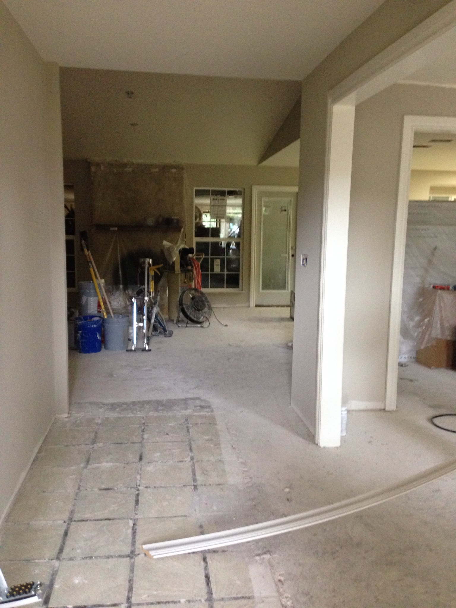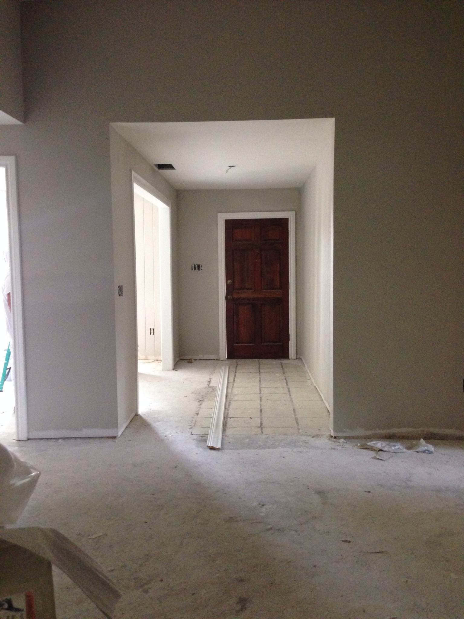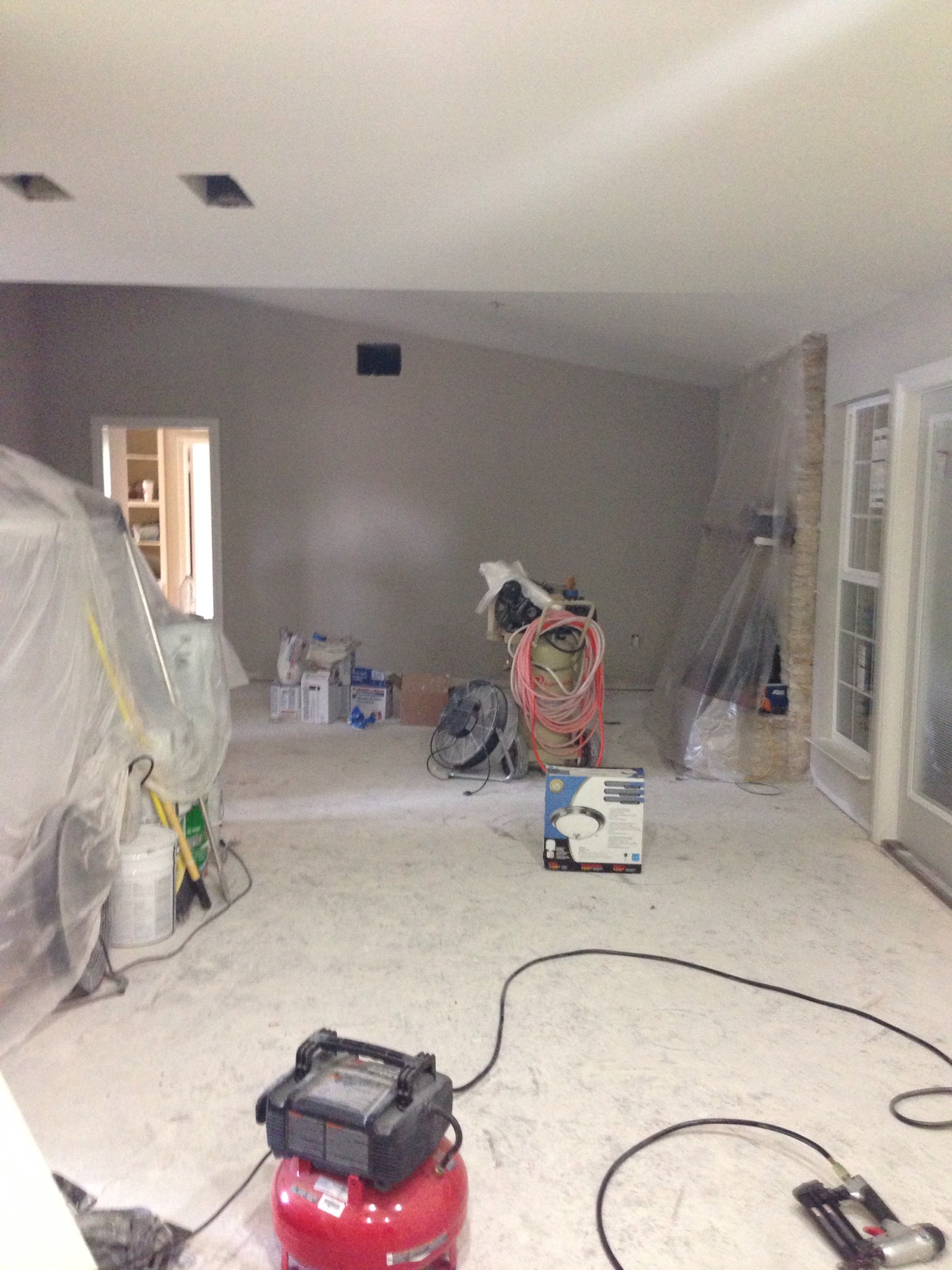Oil based paint fumes are thick in the air of Ugly House, which means trim has been painted, which means walls have been painted, which means I am HAPPY! They FINALLY completed all painting in the house with the exception of the baseboards in the common areas, the crown molding in the dining room and doors for built in cabinetry, which have all yet to be installed. They plan to paint all said items tomorrow and Trent will install them once the paint dries. This place is so close to being pretty that it’s crazy!