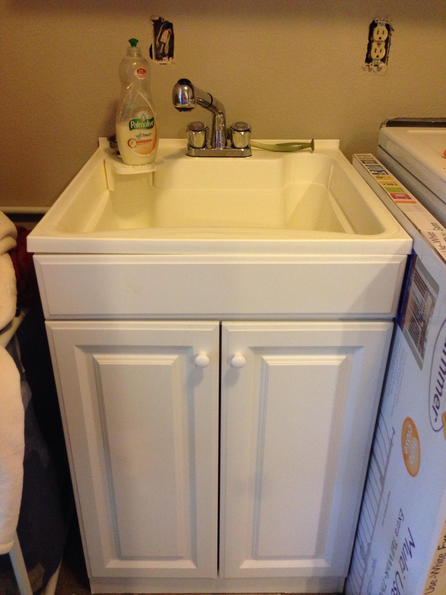 We got our utility sink installed and hooked up our washer and dryer. Excuse the mess, by the way.