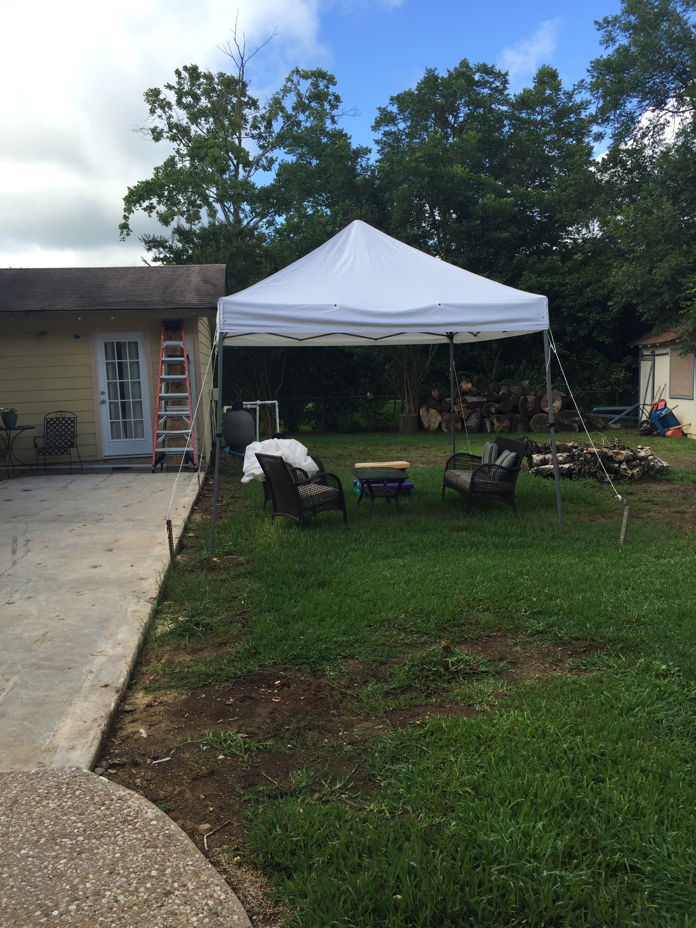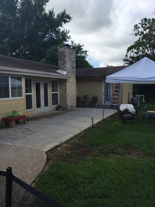 Excuse our temporary tent – it is our only current refuge from the sun in the backyard. This backyard gets full afternoon sun so if you are not in the pool, you are baking. With that being said, Trent has begun one of our latest projects: the pergola! The pergola will cover the back porch where the old addition used to be. We are so excited for the completion of this project! Not only will it be attractive, but extremely functional in this extreme Texas heat. Updates to come soon! I promise 😉.