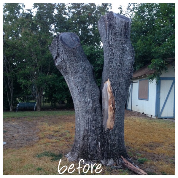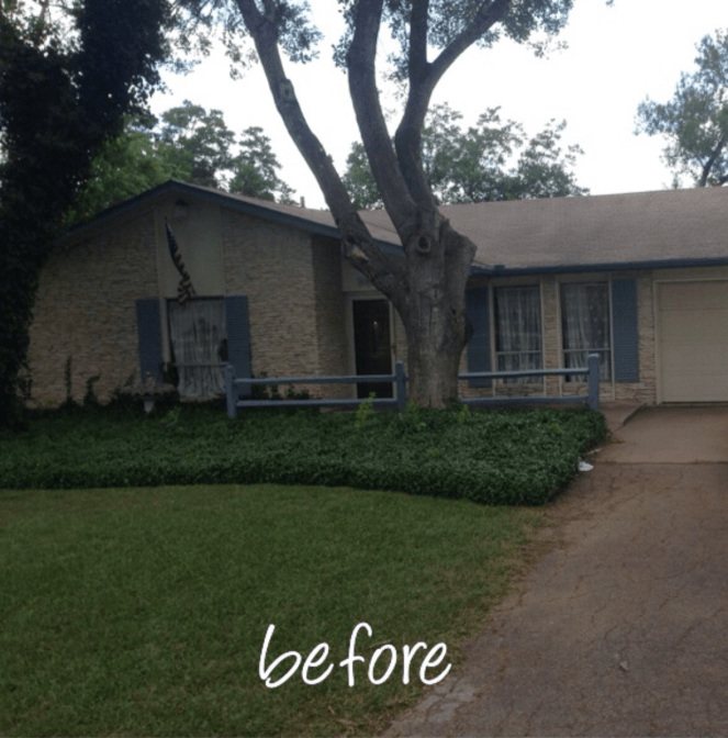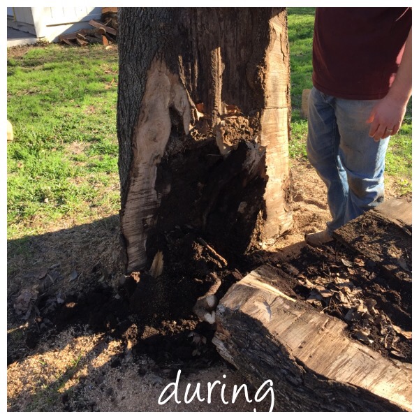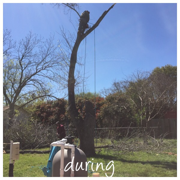 Unfortunately some of these projects were unforeseen. We had to cut down 3 of our big trees 😢 . Two were filled with termites and rotting away, while another was about to fall on our neighbors fence. Trent cut down the ivy infested tree that was in front of the far left window and we hired a tree company to cut down the other two as they were hanging over our house and our neighbors fence.