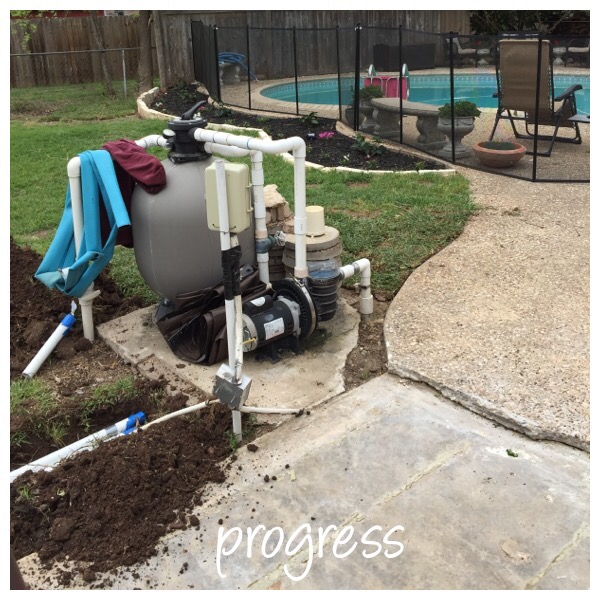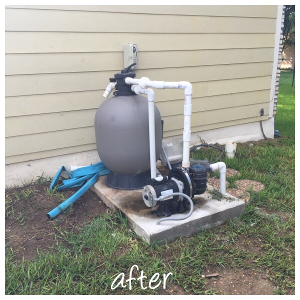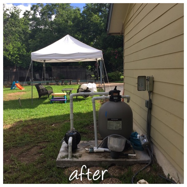 Trent relocated the pool equipment that was in the worst place EVER to begin with. If you weren’t aware already, this guy is handy. Relocating the equipment involved plumbing, electrical, concrete work and some MAJOR digging, and he did a flawless job all by himself!
