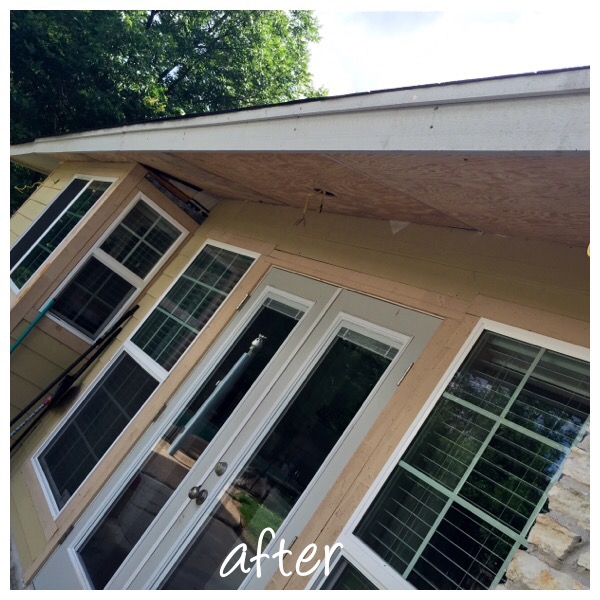 Just recently Trent finished replacing all roofing that was damaged/missing from the addition demo and installed the fascia and soffits. We are almost ready for exterior paint!