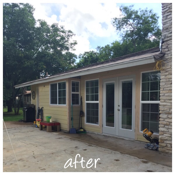 Trent and my dad worked for 12 hours straight one Sunday a few months back and installed siding and trim on the backside of our house. We literally lived with an unfinished backside of our house for like 5 months prior to this. Pretttttty ghetto, huh? It still needs to be painted but has come a LONG way from the photos below.