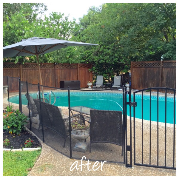In other staining news, I stained our decrepit privacy fence that surrounds our pool.