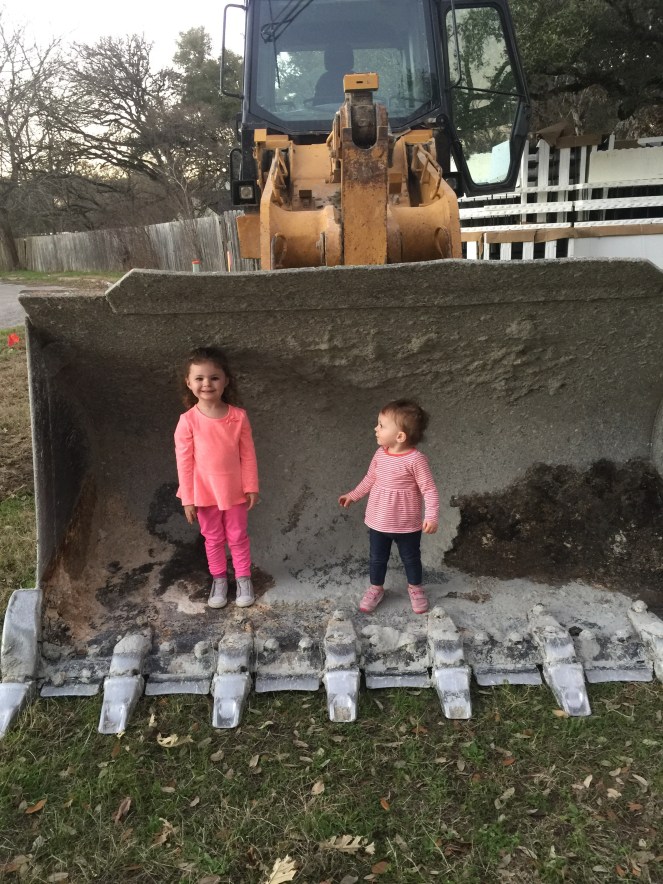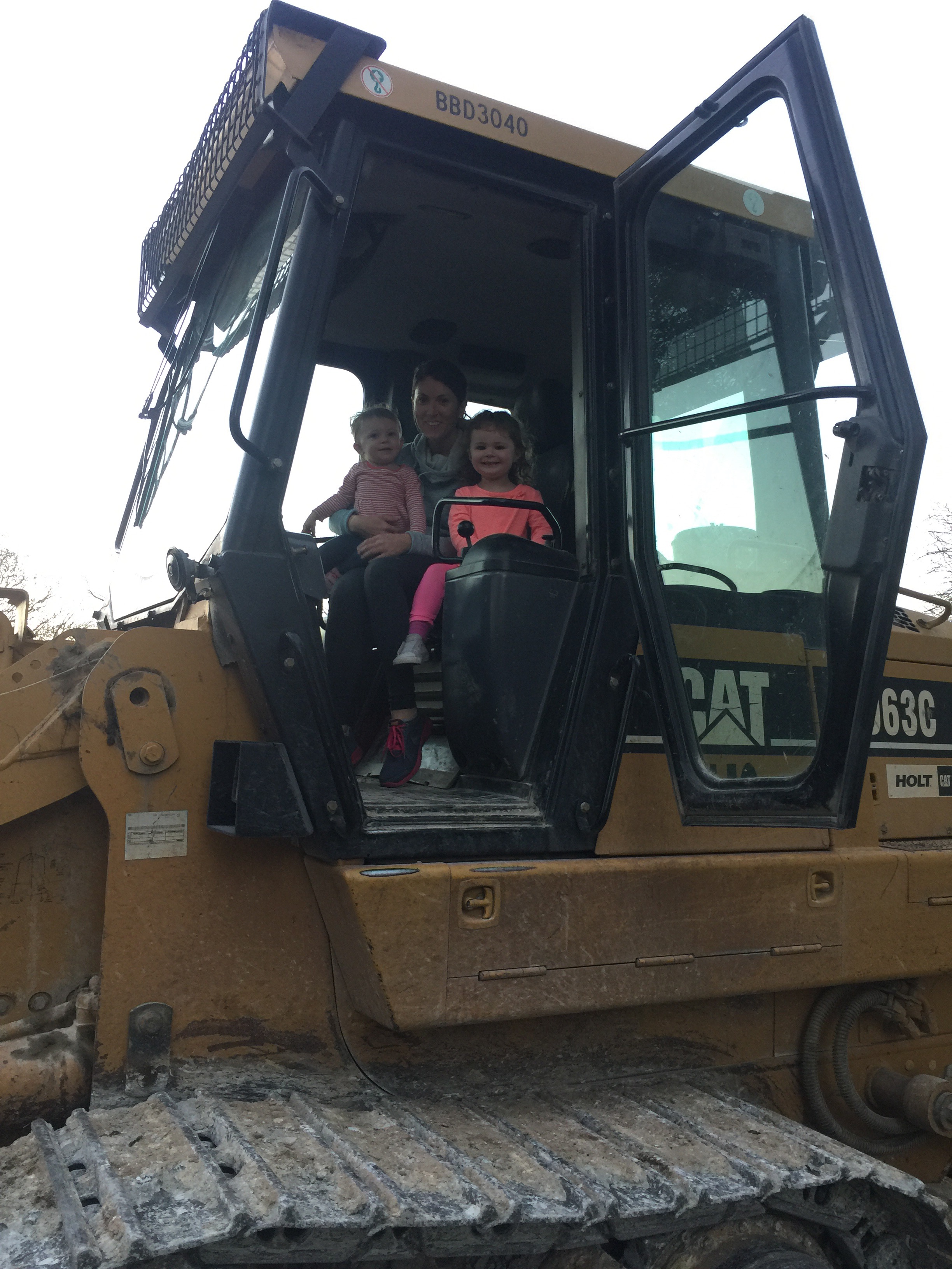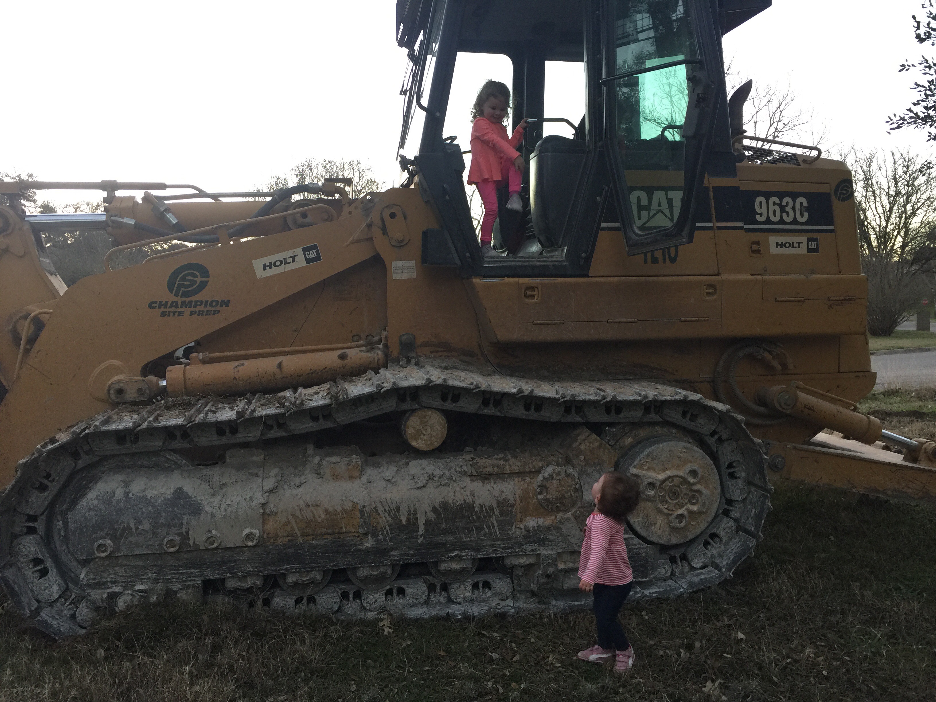 The day before they began, the site prep company had a massive piece of machinery delivered to our lot. Since it’s not everyday that you have one of these to play with, we decided to have a little photo shoot. I think a track loader might be on Conleigh’s Christmas list…