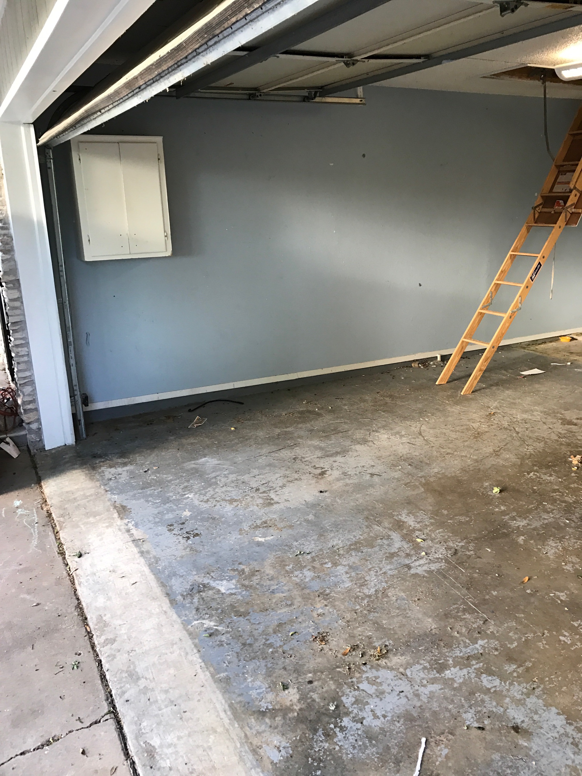 BLEH! I absolutely hated our garage. The remaining paint on the garage floor was so poorly attached that it would stick to your feet if you walked on it. I cringed at the thought of bare feet walking on it and then entering our house 😖. These pictures don’t really show the nasty popcorn ceilings, but I am sure you can imagine the ugliness.