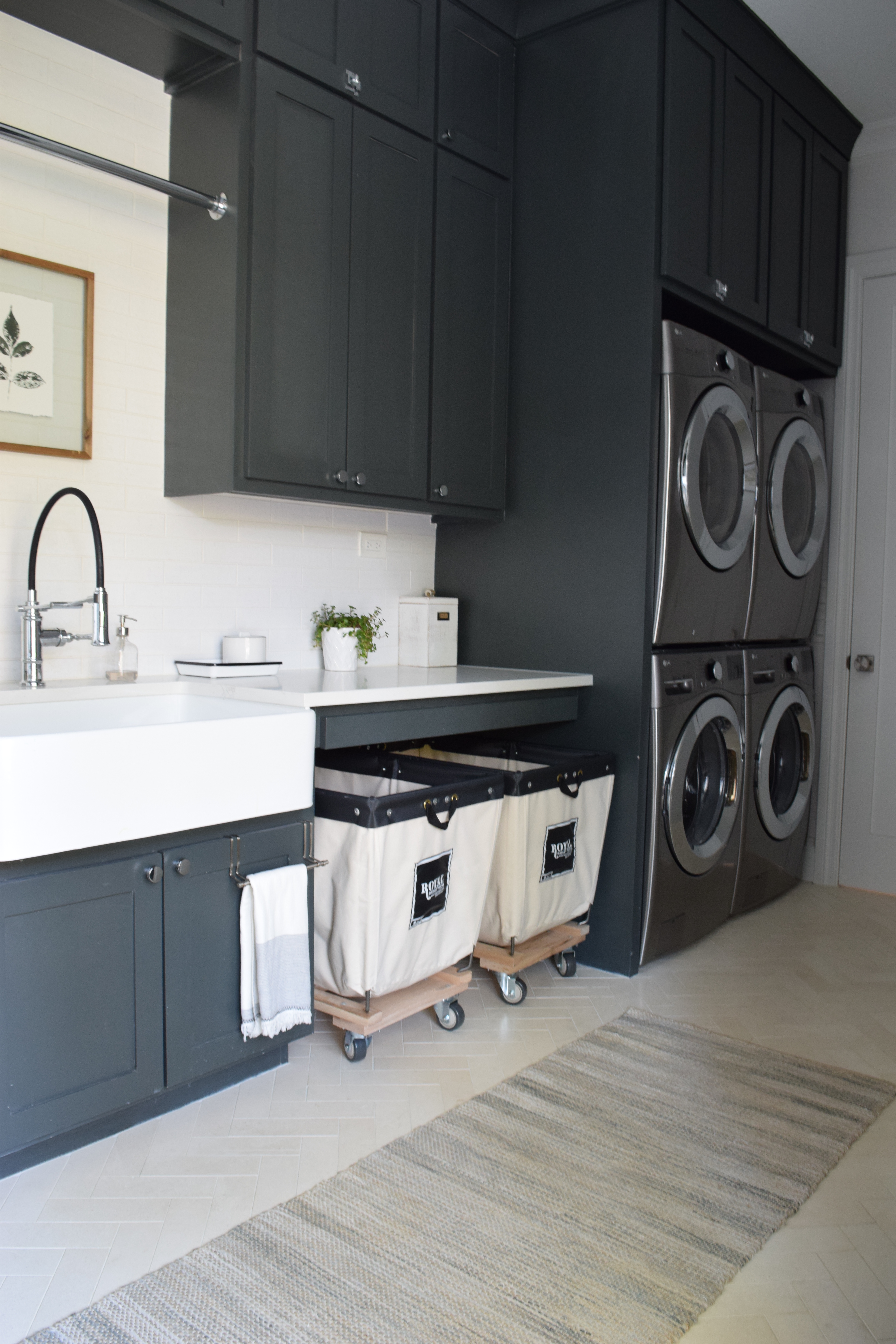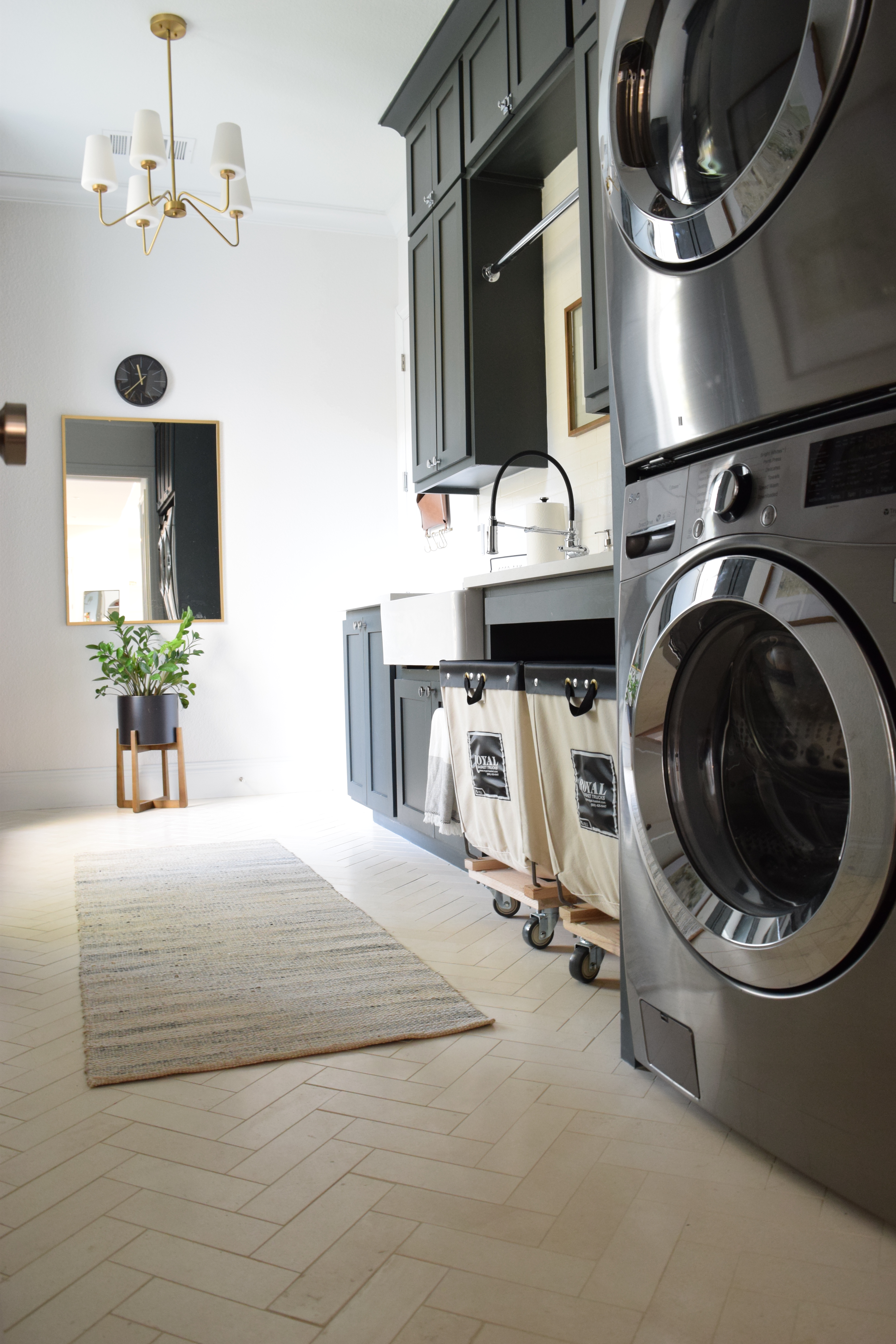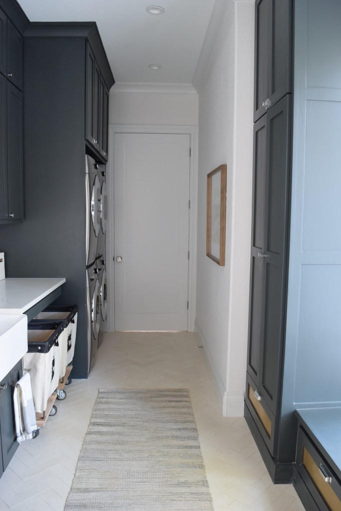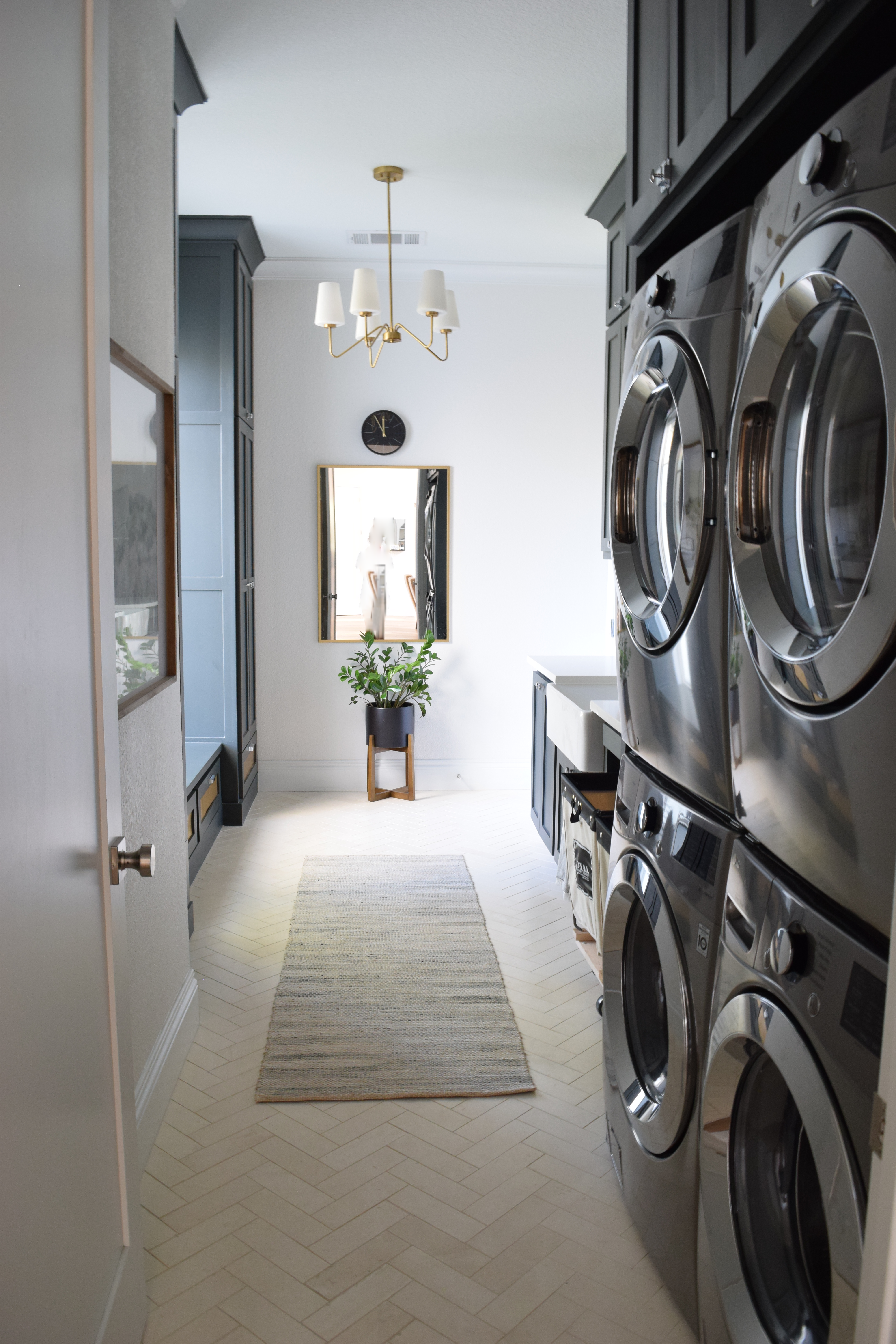 There were actually lots of “musts” in this room… Another was having 2 washing machines and 2 dryers. Since we have an Airbnb above our semi-detached garage and we manage it ourselves, we needed to be able to keep up with the laundry. This has been super helpful with regards to the Airbnb, but also for our everyday lives. Washing all the bedding for our family used to be an all day event, but it is now a breeze with the extra set of machines! I thought that the stacked configuration would be a problem since I am slightly vertically challenged, but everything is super functional and I don’t even need a stool 🎉!